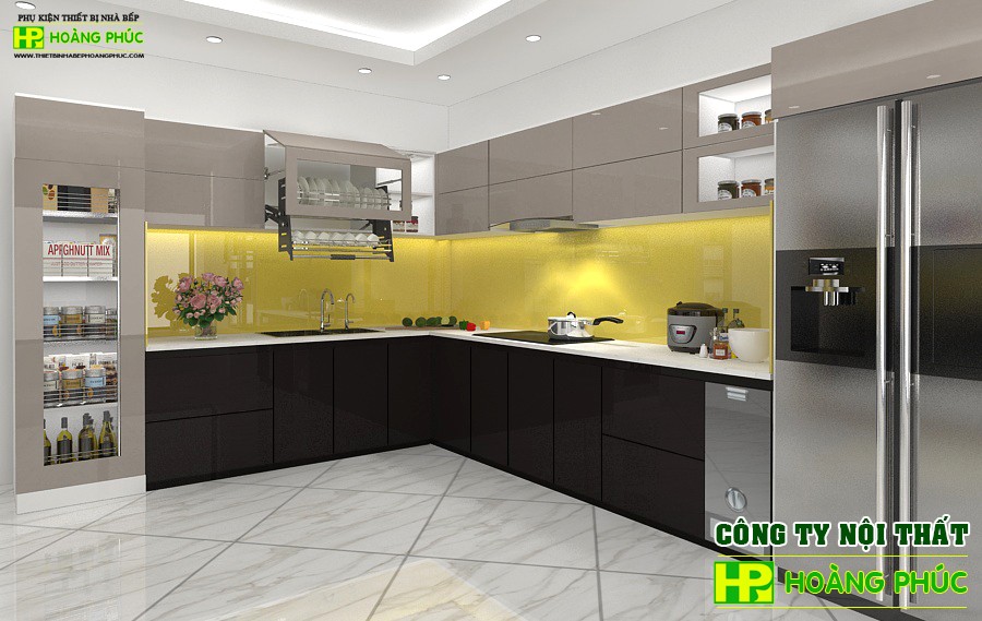 – Phụ kiện chức năng: Thùng gạo thông minh, máy lọc nước,  kệ gia vị, giá bát đĩa di động, giá xoong nồi inox, tủ khô.